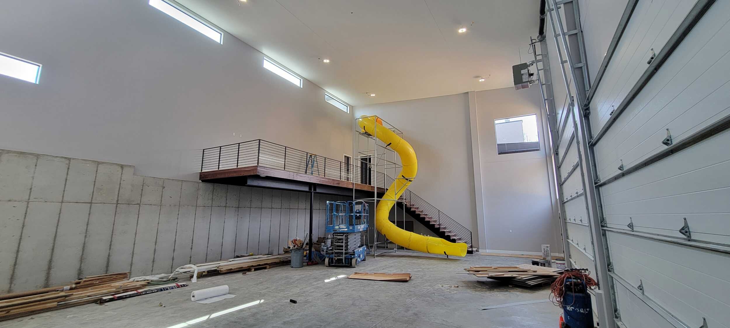 • Slide room cantilevered over the garage, taking you from the second floor elevation to the basement floor, featuring the slide repurposed from Fort Wayne Science Central.