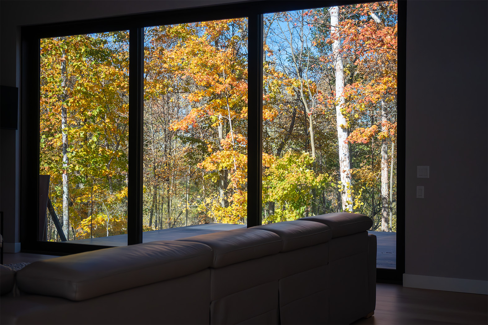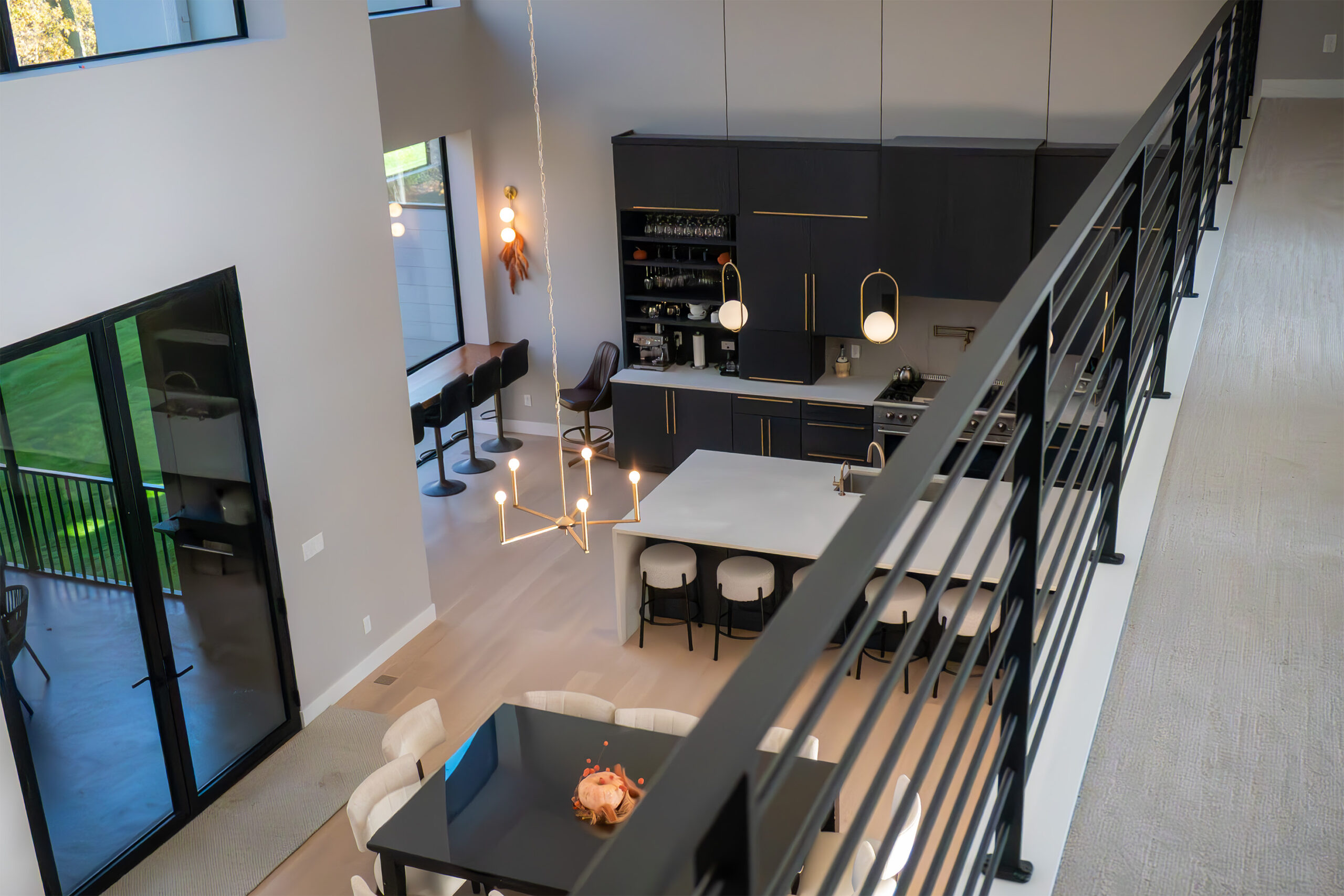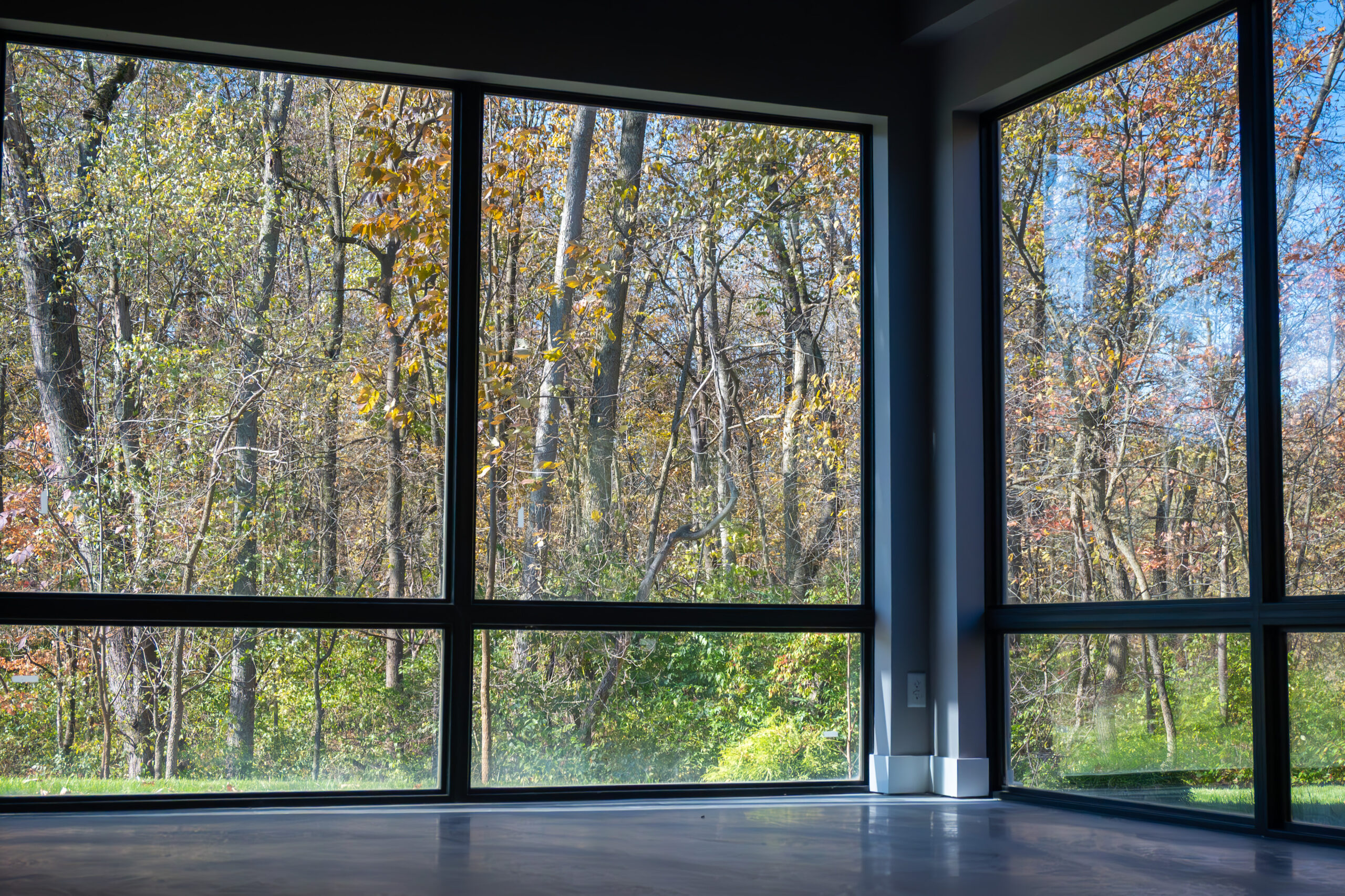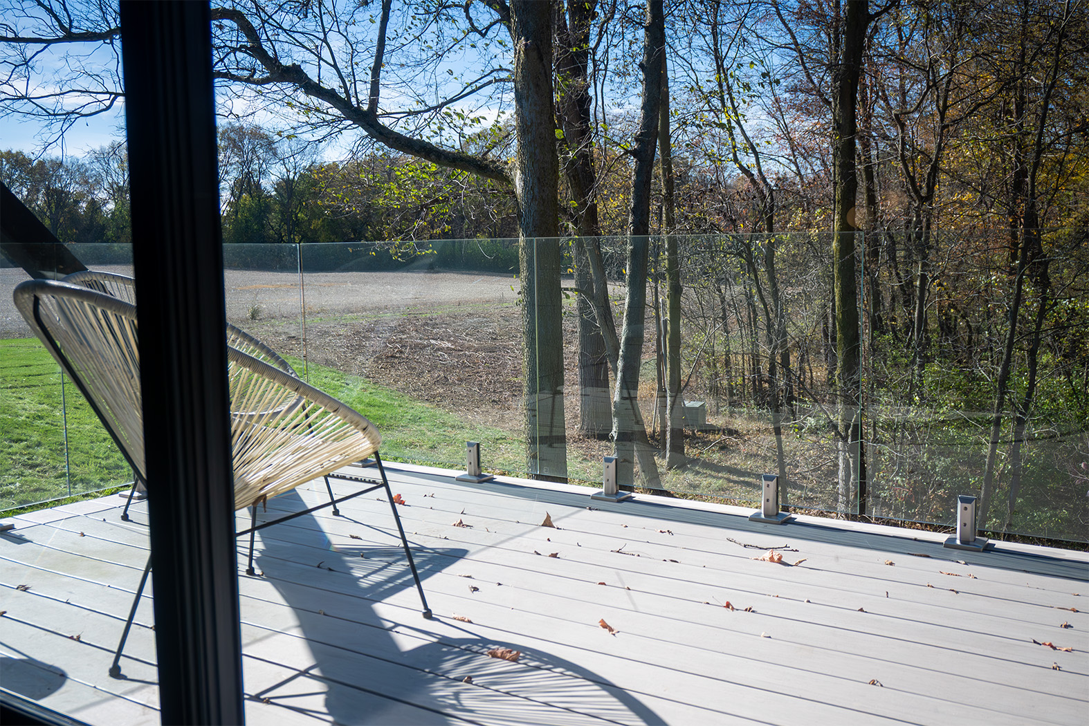 • Stacking glass door system: 18 ft × 10 ft opening consisting of 3 stacking panels to create a full glass opening.