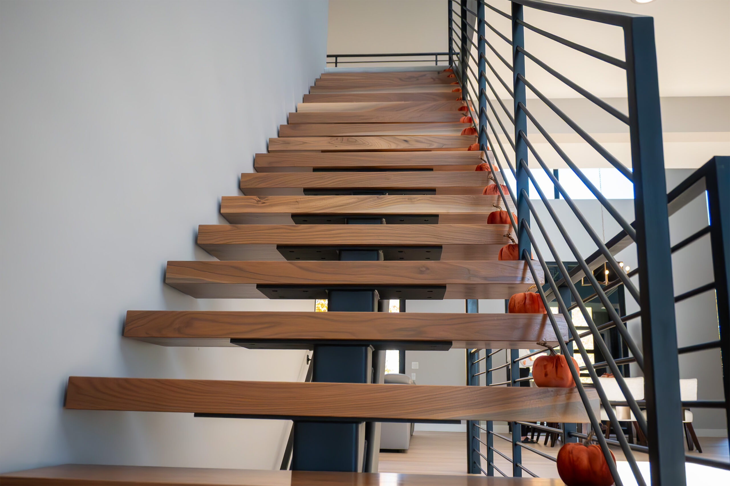 • Walnut stairway crafted from trees originally on the property—adds sustainability and personal touch.