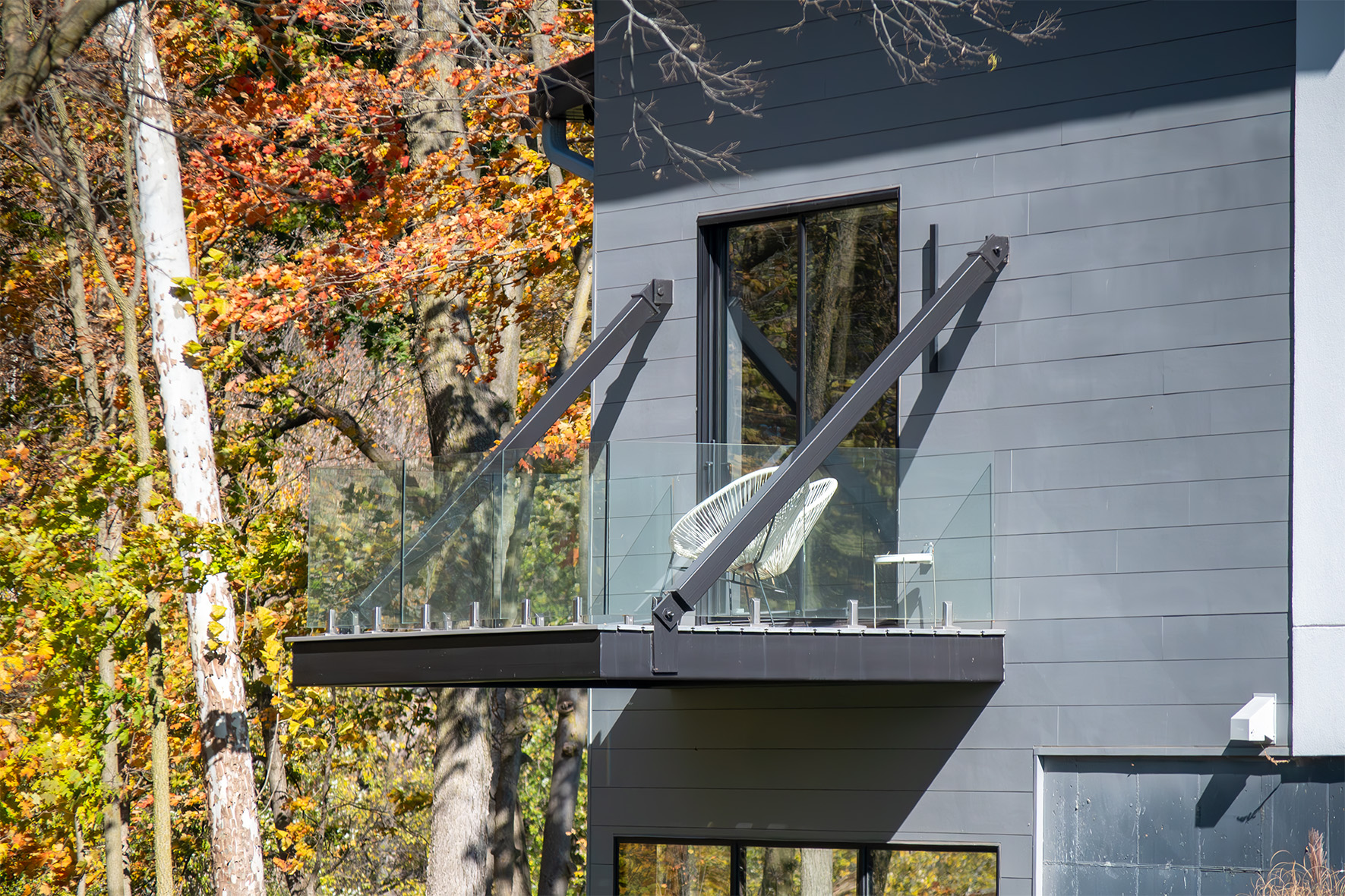 • Balcony support system integrated into the roof structure for top-down stability.